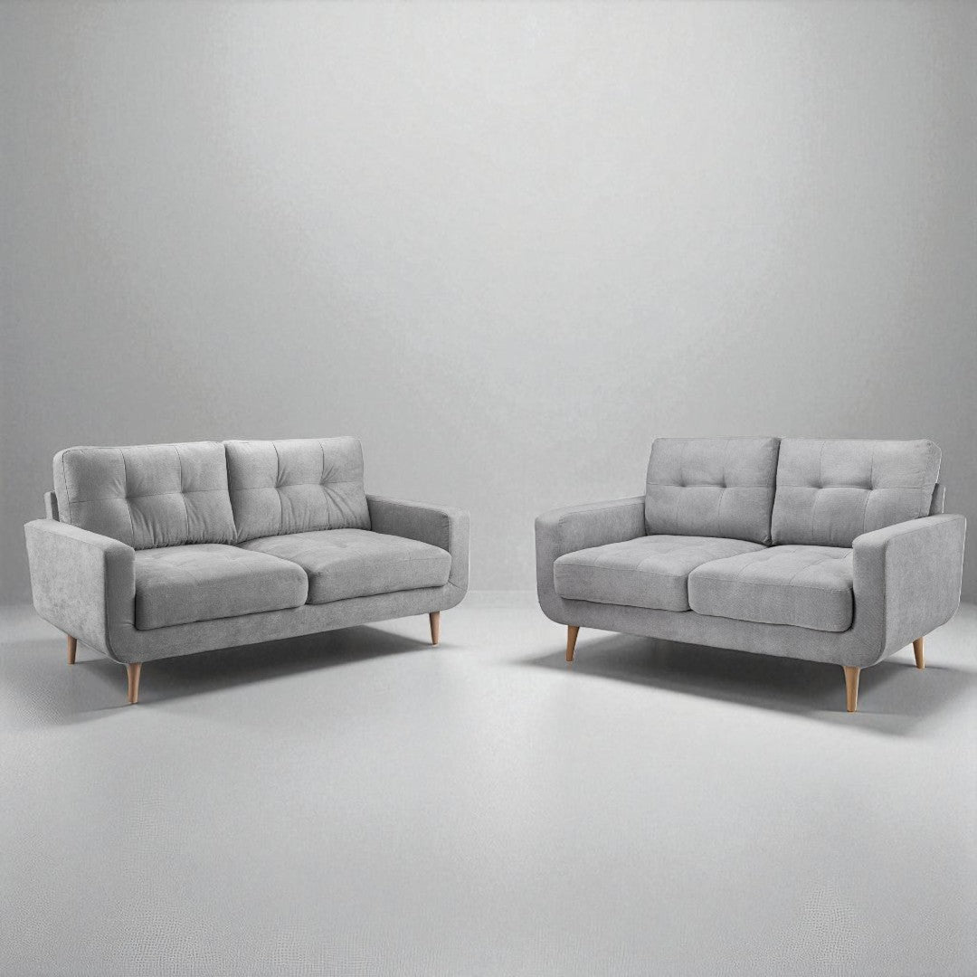 Upholstered in soft-touch, durable fabric, both sofas offer deep foam-filled seat cushions and supportive backrests with elegant button tufting. The clean, boxy silhouette is enhanced by Scandi-style wooden legs, adding a light and airy feel to any room.