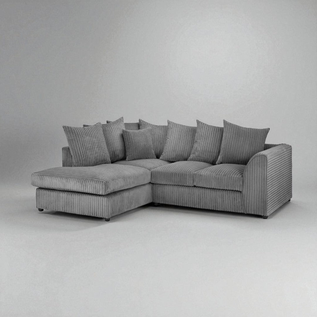 The Harley Corner Sofa (left hand facing) is the perfect blend of comfort, style, and practicality – a customer favourite and a very popular choice among households across the UK. Upholstered in a soft, durable grey corded fabric, Harley offers a cosy, laid-back look with deep cushions and wide seating that invites you to sink in and relax.