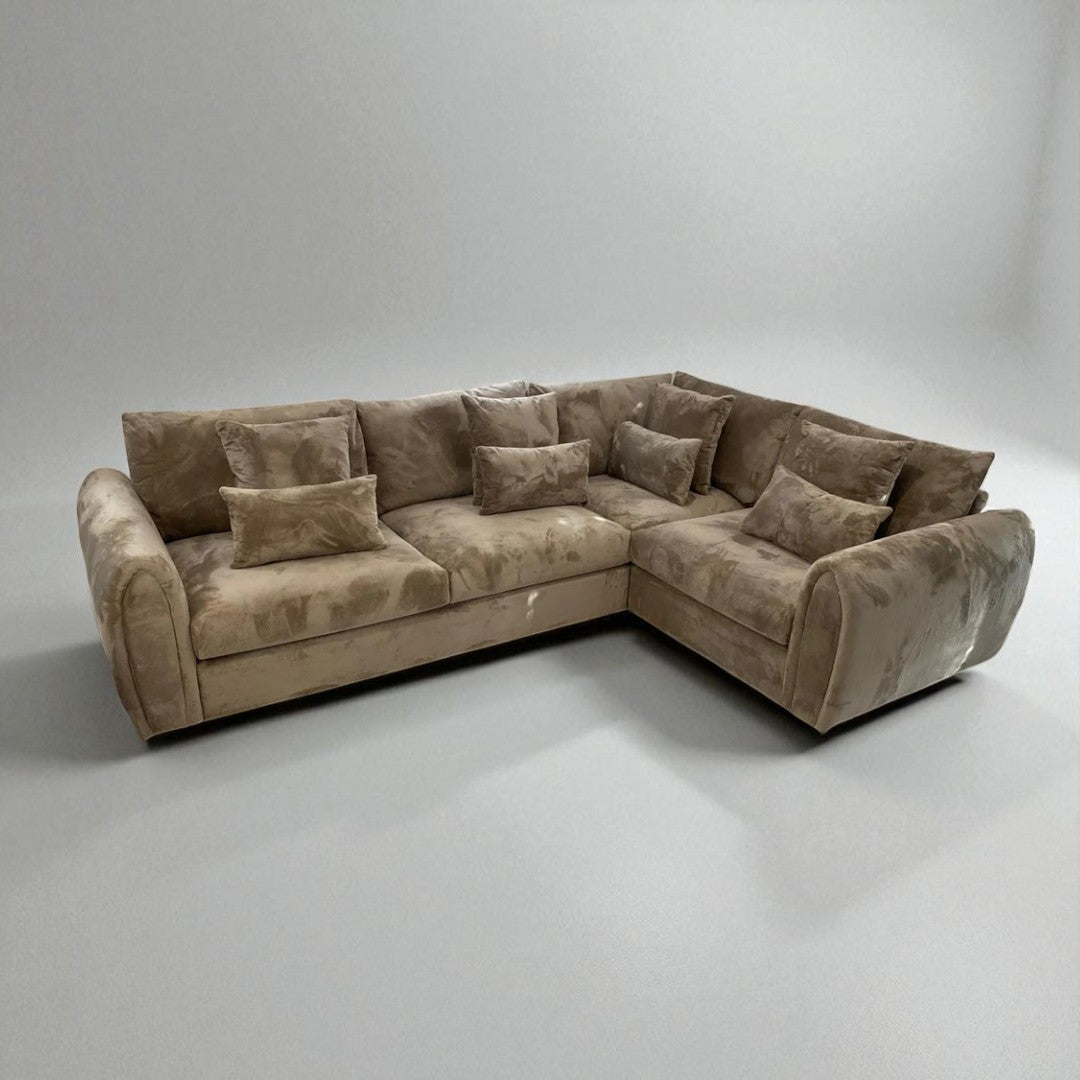 With its generous proportions, deep foam seating, and supportive scatter-back cushions, the Mirabel Corner Sofa offers a sink-in feel that’s perfect for family living, movie nights, or laid-back lounging. The soft fabric finish adds a layer of everyday luxury, while the gently curved arms introduce a touch of sophistication.