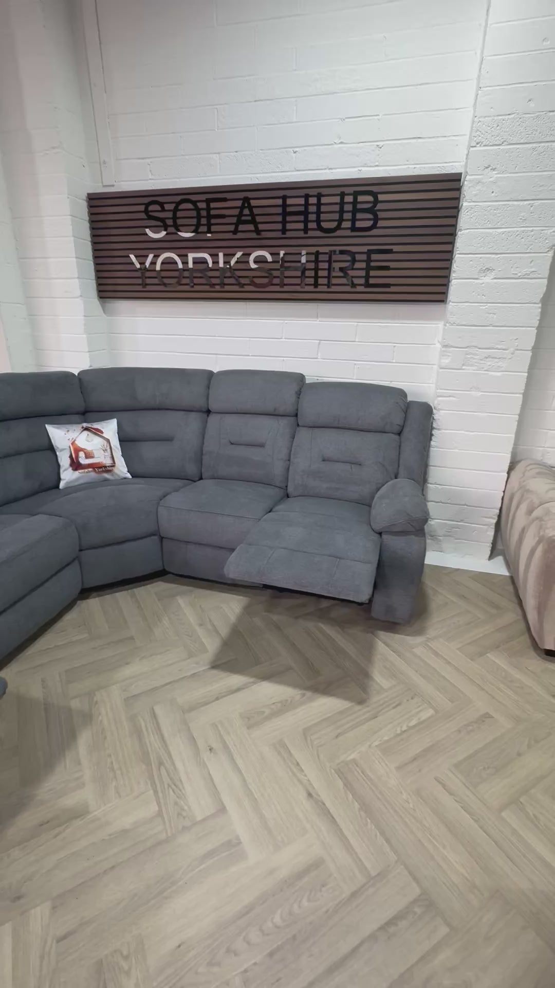 The Poppy range is available as a Large Corner in Grey Fabric, Black Faux Leather and Grey Faux Leather. This comfy large corner features a console with lift up storage and cupholders. Alongside 2 Manuel Reclining seats.