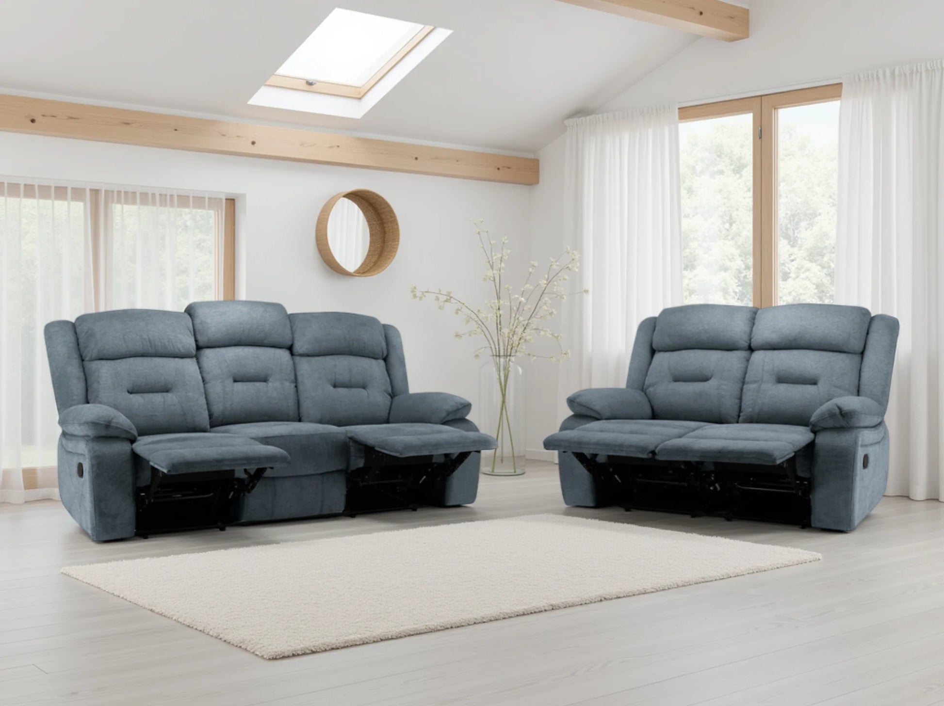 Poppy Grey Fabric 3+2 Seater Sofa