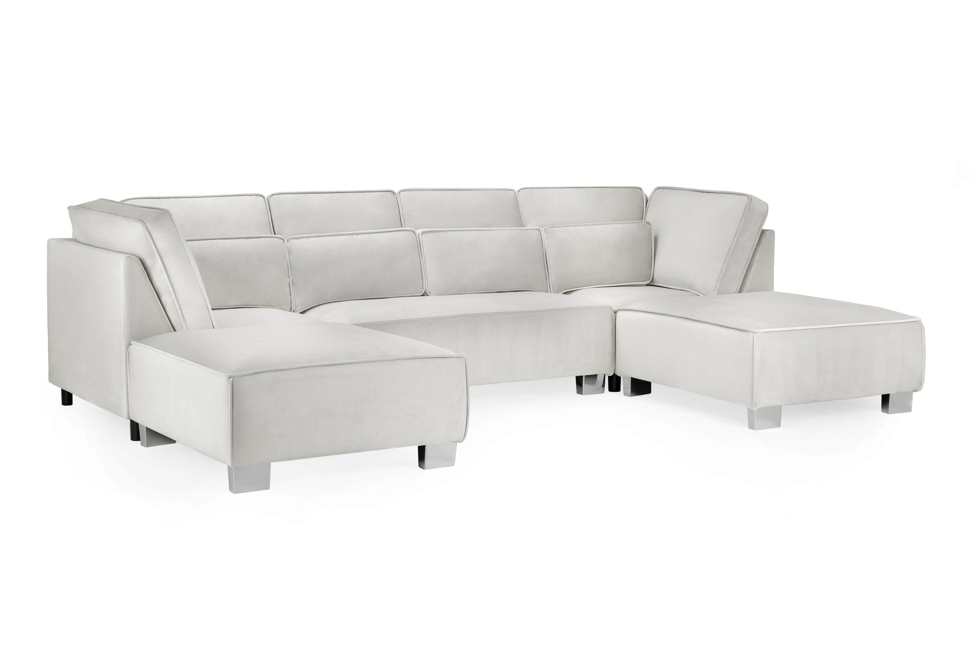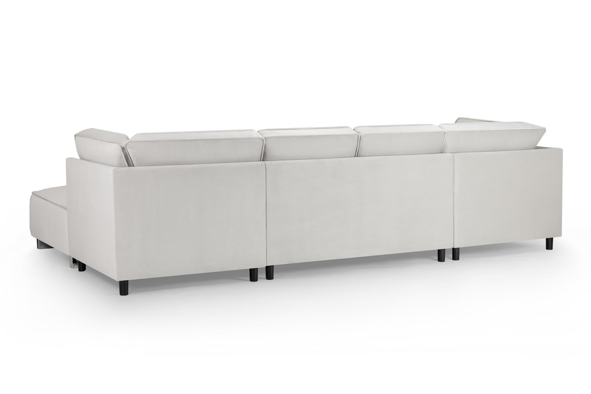 Featuring foam-filled seat cushions and a solid wood frame, this U-shaped corner sofa offers deep and relaxed seating