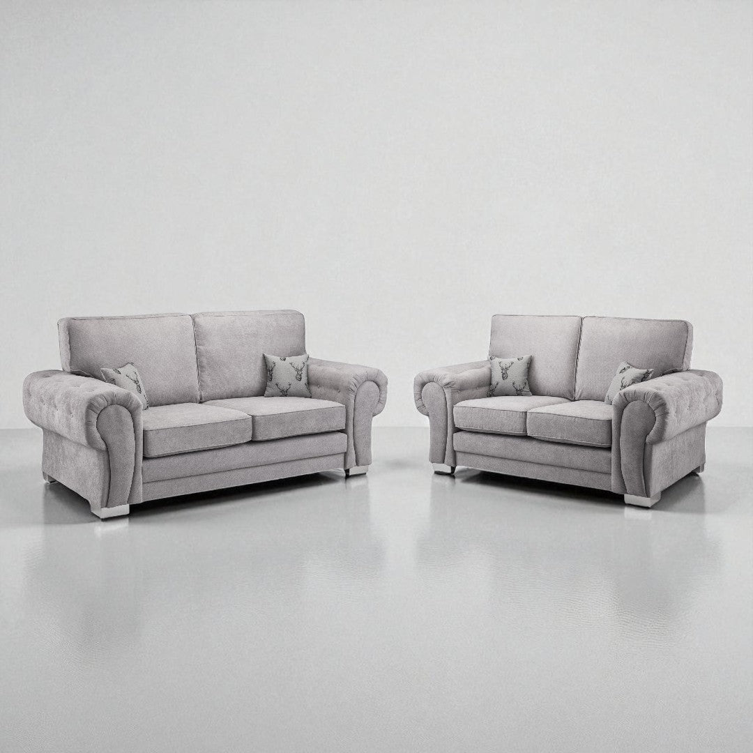 Crafted in a soft, textured grey fabric, the Verona exudes a calm, contemporary vibe while effortlessly blending with any interior colour scheme. Its fullback cushion design delivers plush support, while the classic scroll arms and deep seats add a touch of traditional charm. Whether you’re relaxing with a book or hosting friends, this sofa offers the ideal mix of space and style.